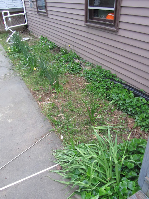 2011-We added a couple different hostas along this side and in between there are three astilbes. At the far end of this you see my lilac bush that was here when I moved in. |